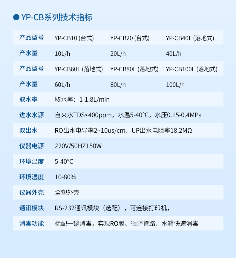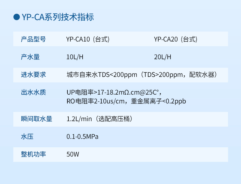 進水水源:總溶解固體量TDS≤200ppm,水壓0.10~0.40MPa,水溫5~45℃