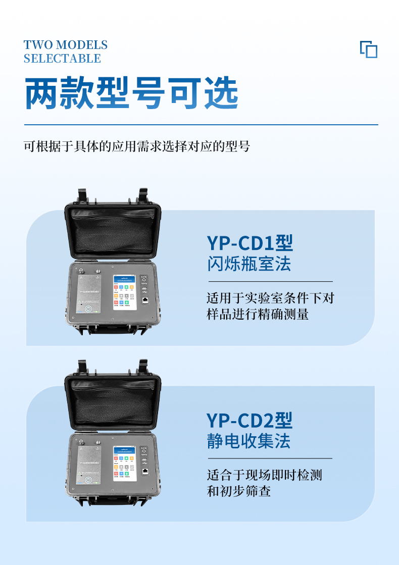 水中氡(選裝):(0.003~1000)Bq/L