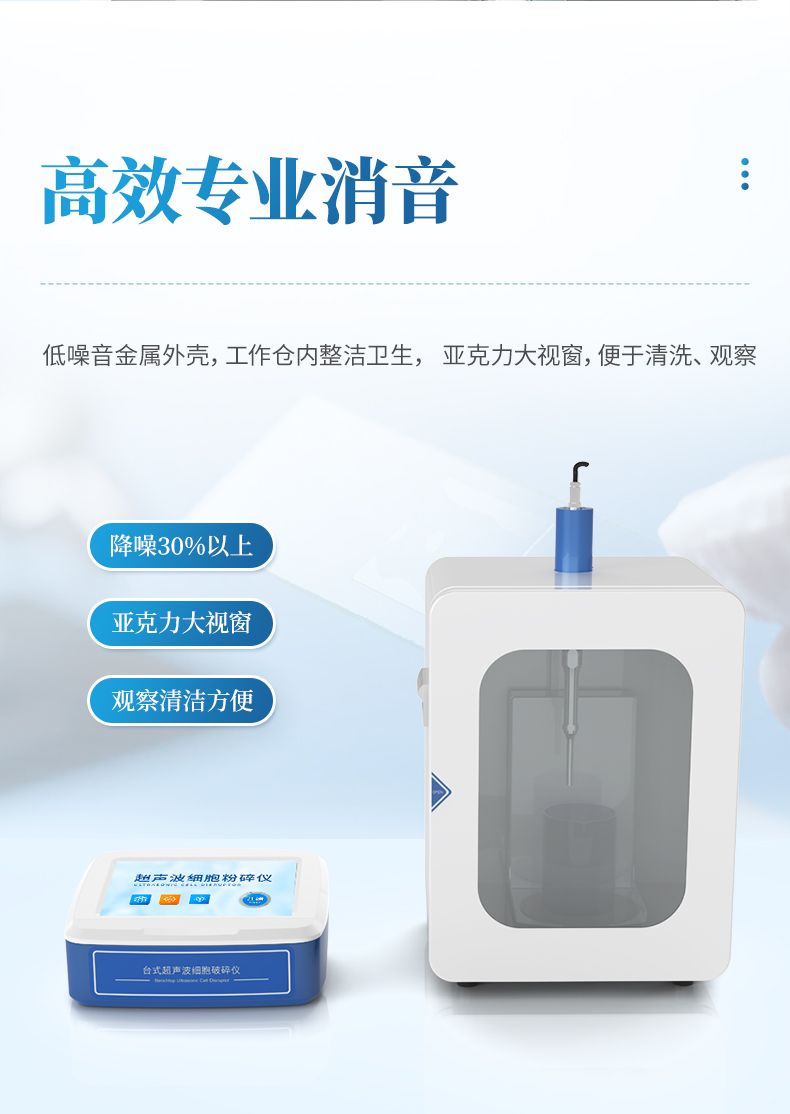 萊恩德自研自產的超聲波細胞破碎儀,將隔音箱融入到主機中形成一體化。功能齊全、外觀新穎、性能可靠。儀器采用大屏液晶顯示;中央微機集中控制,超聲輸出、間隙時間、超聲功率,樣品溫度監測顯示,頻率自動跟蹤,故障自動報警等功能。適用于生物化學、微生物學、藥物化學、表面化學、物理學、動物學、農學、醫學、制藥等領域的教學、科研及生產。