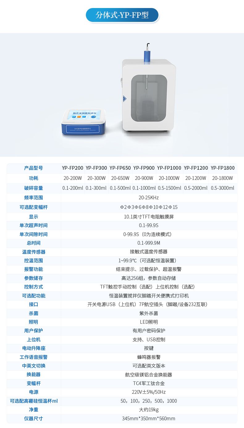 4.破碎容量:0.1--200ml(需選配相應的變幅桿)