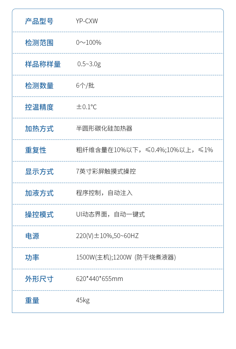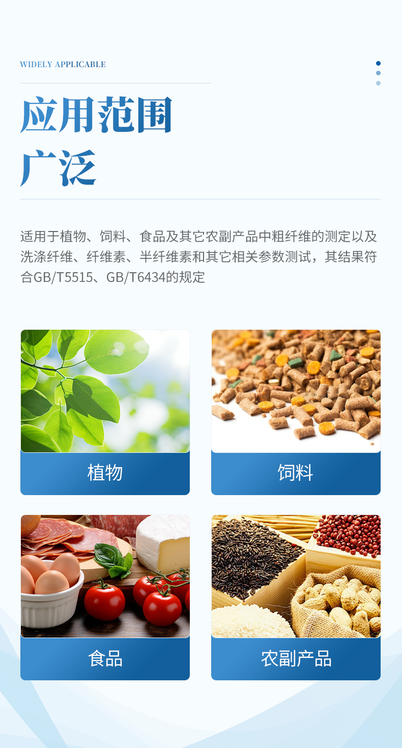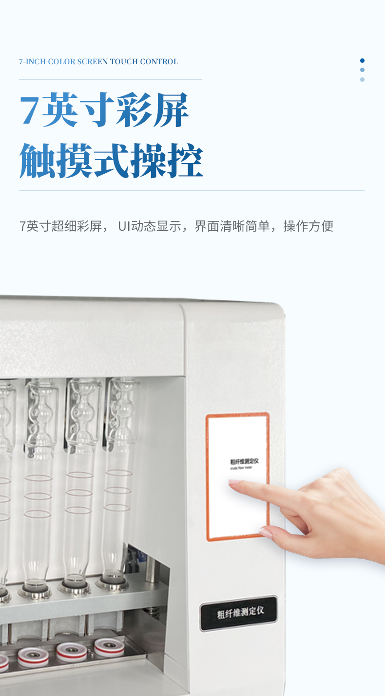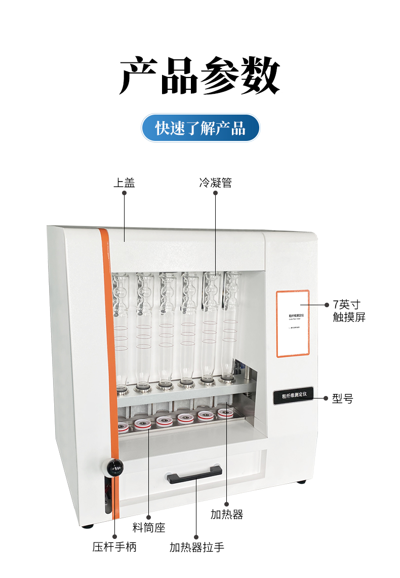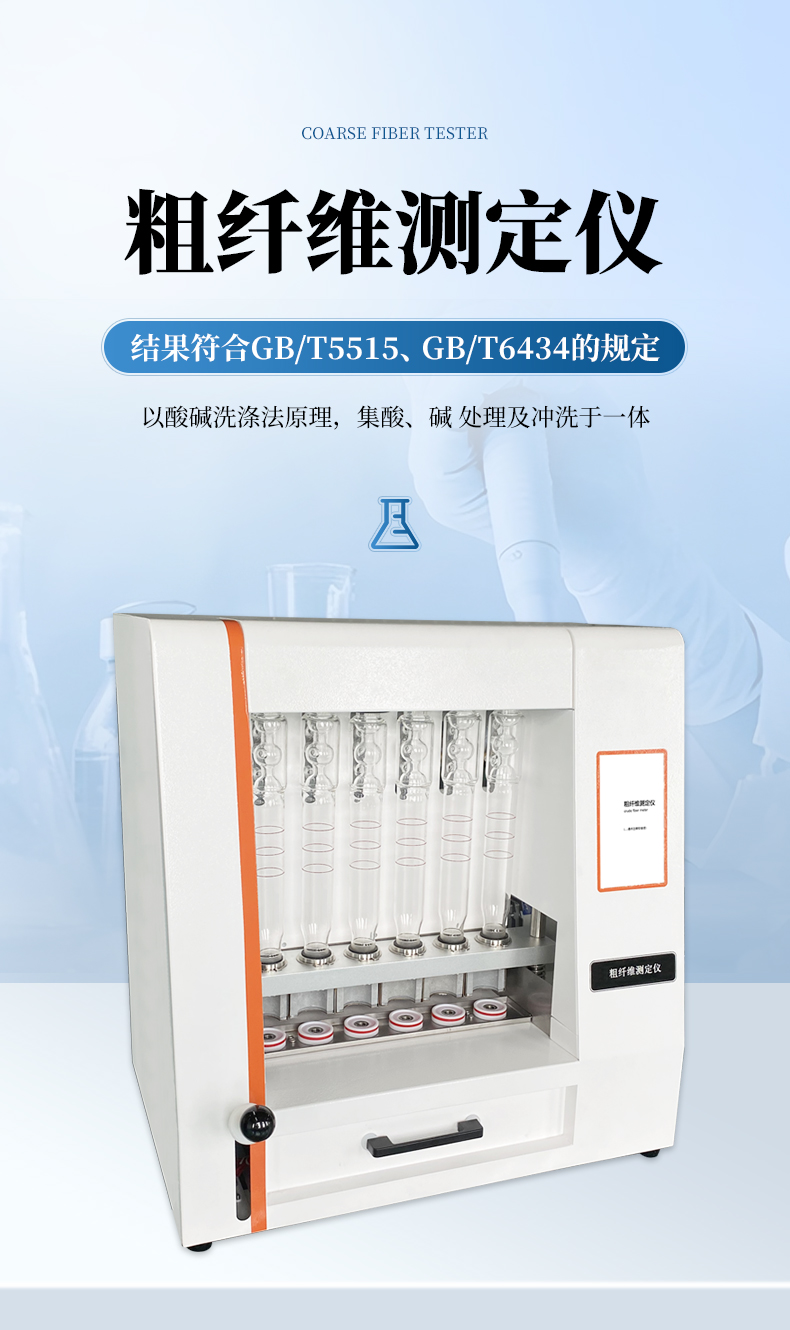 粗纖維測(cè)定儀是一款操作簡(jiǎn)單、應(yīng)用靈活的纖維含量檢測(cè)儀器,可用于 傳統(tǒng)的溫德法檢測(cè)粗纖維和范式法檢測(cè)洗滌纖維。它是以酸堿洗滌法原理,集酸、堿 處理及沖洗于一體,采用全封閉電加溫、加液、消煮、抽濾、沖洗的方法來(lái)測(cè)定纖維 含量。適用于植物、飼料、食品及其它農(nóng)副產(chǎn)品中粗纖維的測(cè)定以及洗滌纖維、纖維 素、半纖維素和其它相關(guān)參數(shù)測(cè)試,其結(jié)果符合GB/T5515、GB/T6434的規(guī)定。