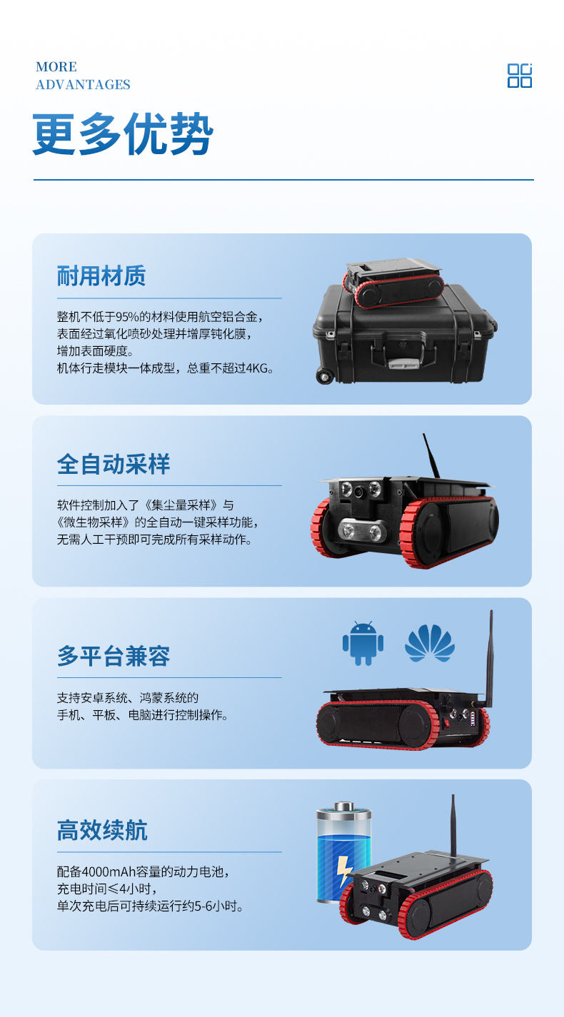 定量采樣機(jī)器人是一款專(zhuān)為公共場(chǎng)所集中空調(diào)通風(fēng)系統(tǒng)內(nèi)部采樣設(shè)計(jì)的高精度、便攜式智能設(shè)備。該產(chǎn)品嚴(yán)格按照《WS 10013-2023公共場(chǎng)所集中空調(diào)通風(fēng)系統(tǒng)衛(wèi)生規(guī)范》、《WS/T 10004-2023公共場(chǎng)所集中空調(diào)通風(fēng)系統(tǒng)衛(wèi)生學(xué)評(píng)價(jià)規(guī)范》以及《GB 37488-2019公共場(chǎng)所衛(wèi)生指標(biāo)及限值要求》中的相關(guān)標(biāo)準(zhǔn)進(jìn)行設(shè)計(jì)與制造,確保了其在各種工業(yè)環(huán)境下的穩(wěn)定性和可靠性。它采用了先進(jìn)的航空鋁合金材料,結(jié)合了高效的移動(dòng)性能與卓越的采樣技術(shù),能夠滿足多種行業(yè)的通風(fēng)管道檢測(cè)和維護(hù)工作需求。
