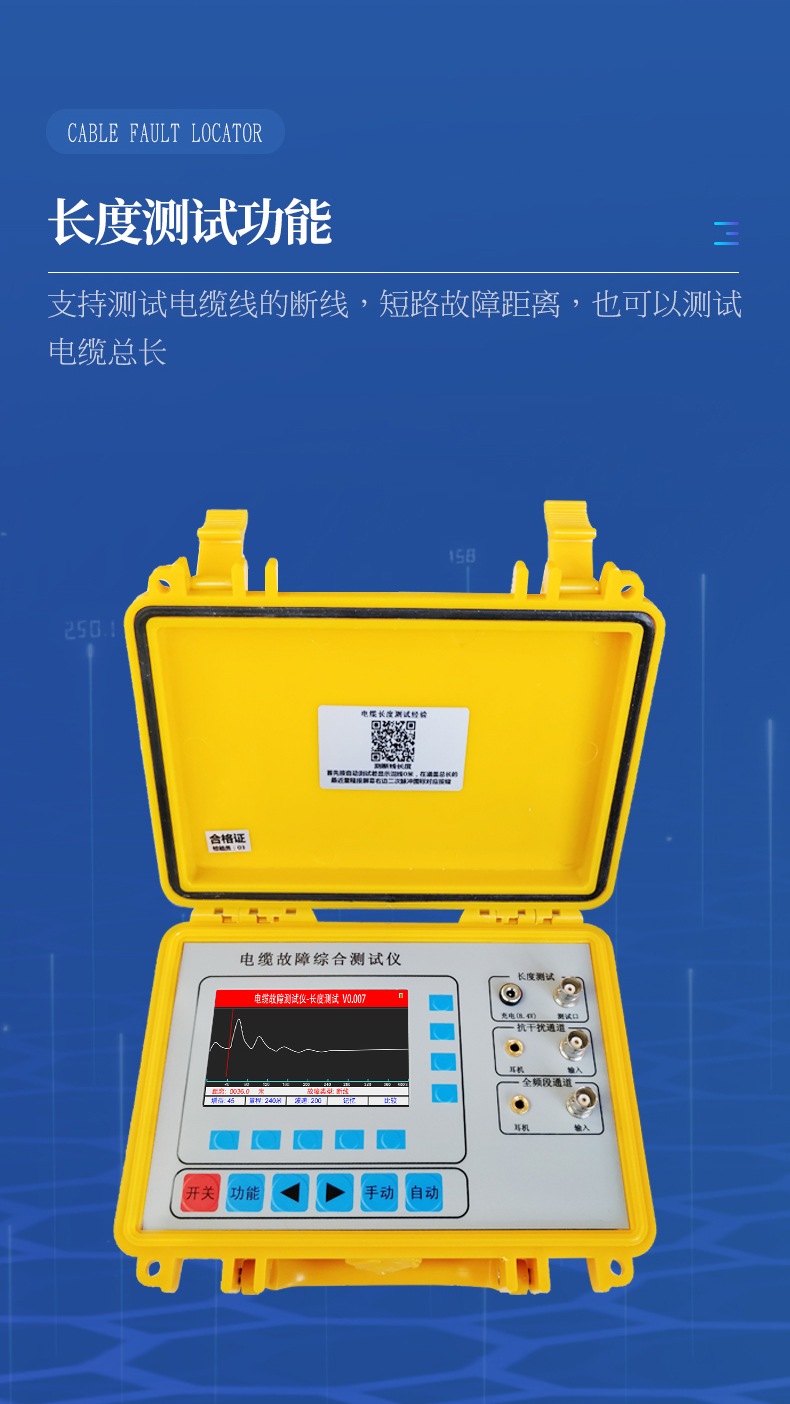 1、長度測試:斷電狀態下可以直接測試電纜的斷線、短路故障距離長度。