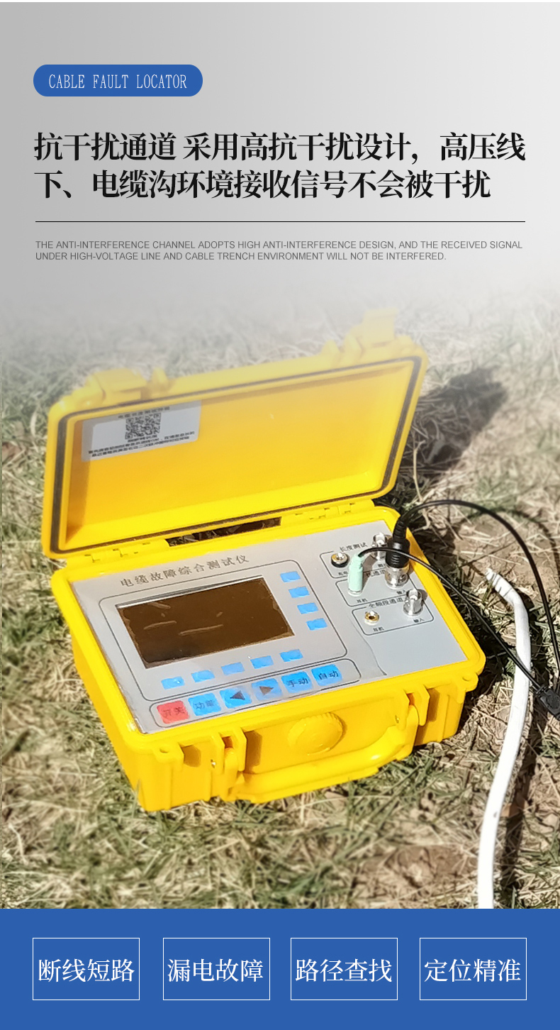 適用于路燈電纜維護、農田水澆地電纜故障查修、小區物業及園林綠化帶地埋鎧甲鐵皮電力電纜、野外動力電纜、高速公路、廠礦企業、鐵塔通信基站直埋供電電纜故障排查等行業。