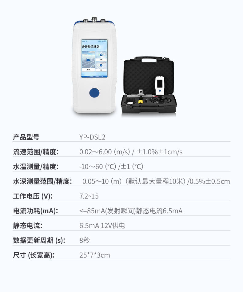 多普勒流速儀原理:當超聲波聲源和觀察者做相對運動時,觀察者接收到的頻率就會和超聲波聲源頻率不同。因此,相對于超聲波換能器的隨水移動的小顆粒、小氣泡也會使換能器接收頻率改變,且隨水中懸浮運動速度的增加而增加, 由 此測出多普勒頻移,也就測出了多普勒流速儀所處點水的流速。 主要用于灌溉明渠,市政下水管道,水文流域等場合。特別適合低水位的場 合,水位超過 15 厘米就可以工作。在規則的管道、渠道,通過流速儀上的壓力 傳感器測得水深,超聲傳感器測得流速,可以方便地計算出流量。