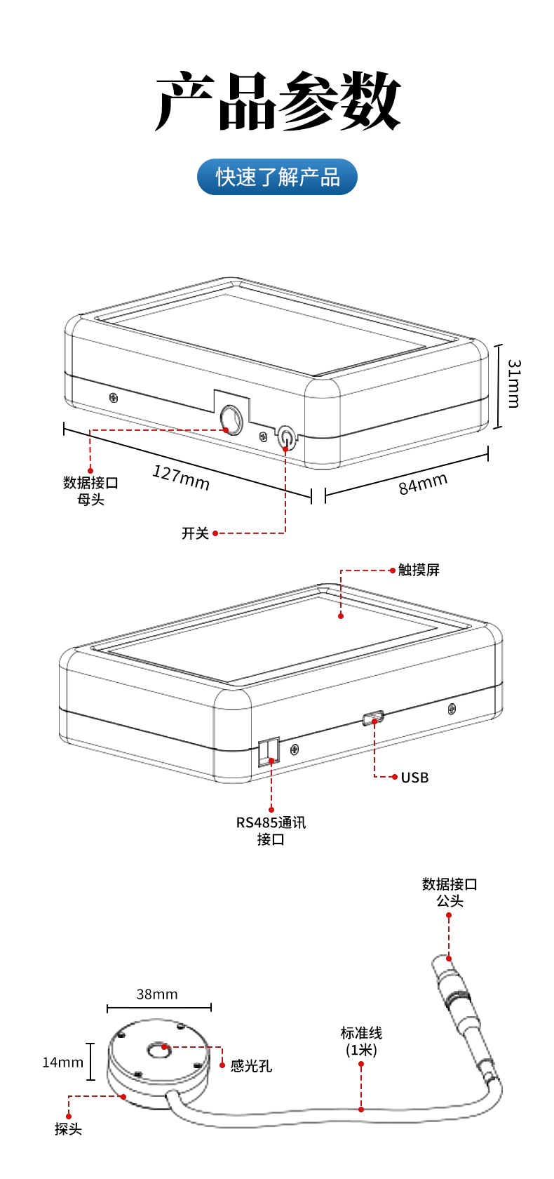 5.一機多用,同一主機可根據不同光源搭配使用不同受光器;
