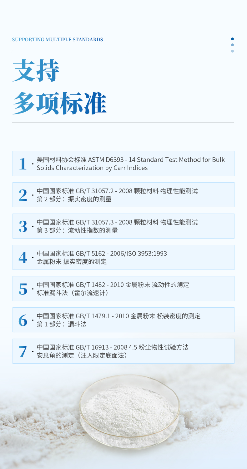 3.中國國家標準 GB/T 31057.3 - 2008 顆粒材料 物理性能測試 第 3 部分:流動性指數的測量;
