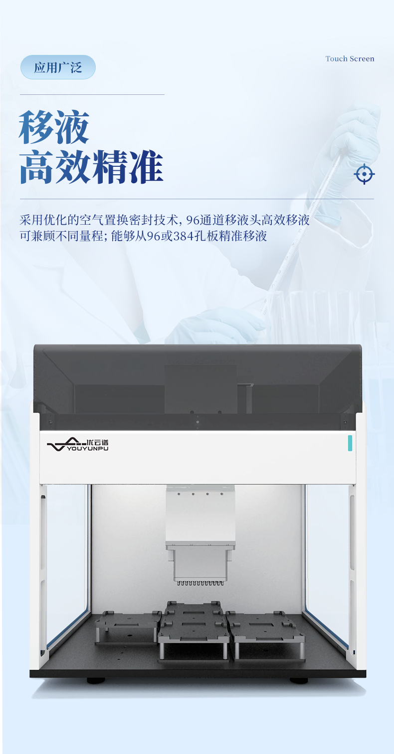 移液高效精準:采用優化的空氣置換密封技術,96通道移液頭高效移液;可兼顧不同量程;能夠從96或384孔板精準移液。