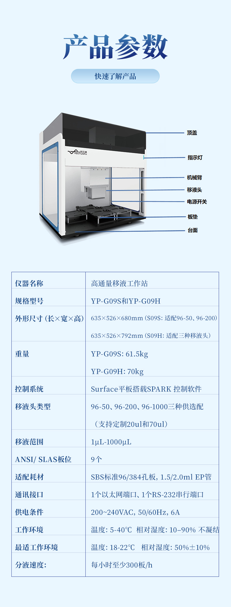 移液頭類型 | 96-50、96-200、96-1000三種供選配(支持定制20ul和70ul) |