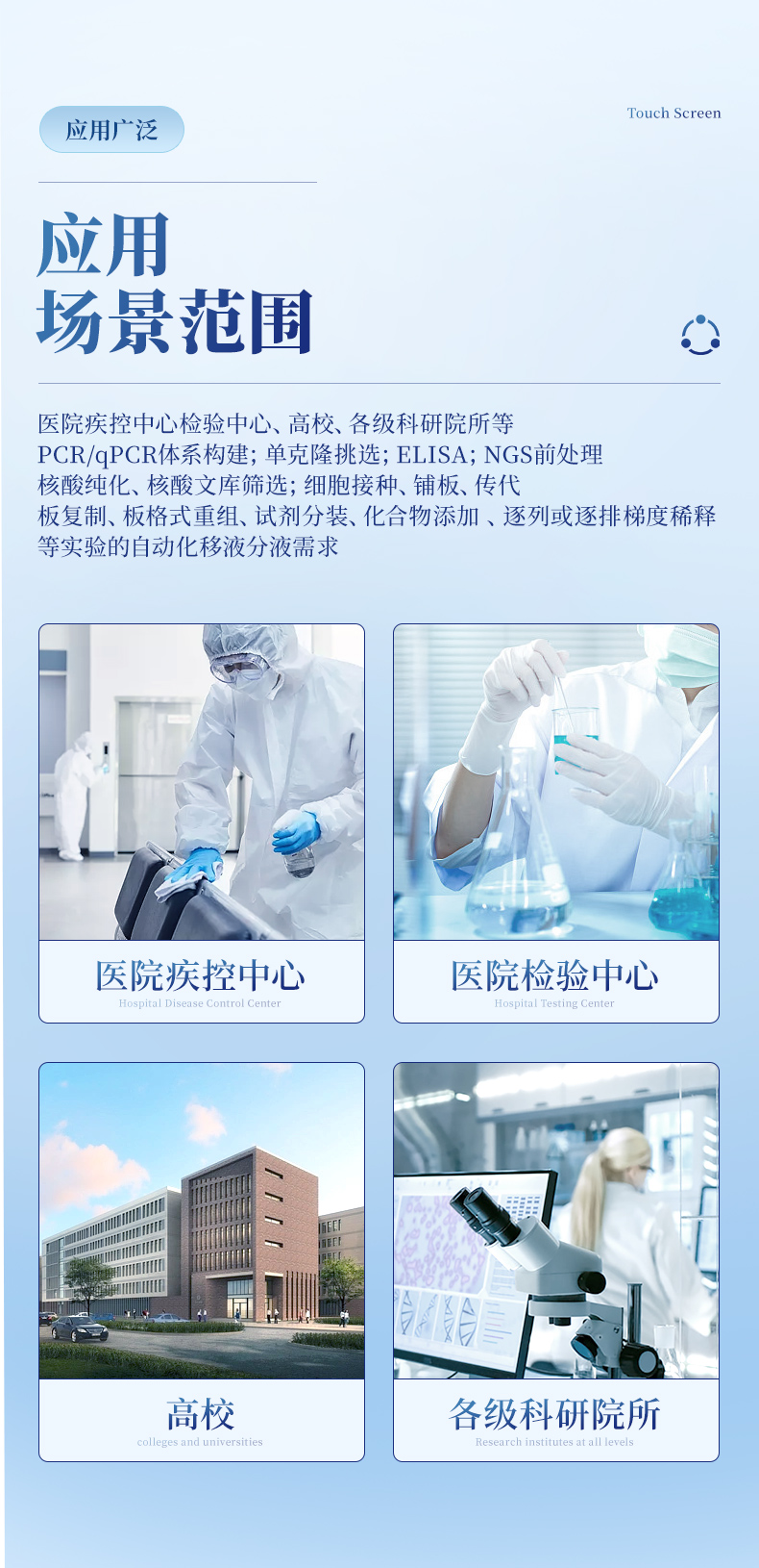 板復制、板格式重組、試劑分裝、化合物添加 、逐列或逐排梯度稀釋等實驗的自動化移液分液需求;