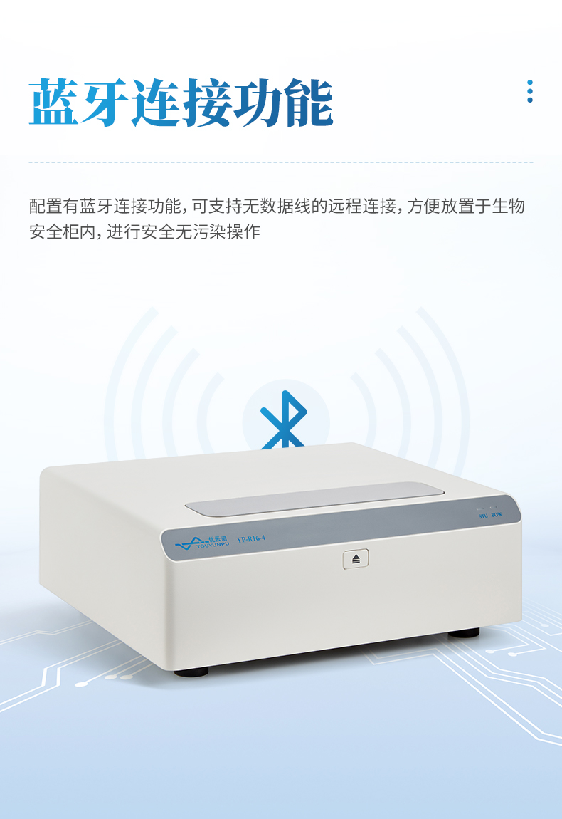儀器配置有藍牙連接功能,可支持無數據線的遠程連接,方便放置于生物安全柜內,進行安全無污染操作。