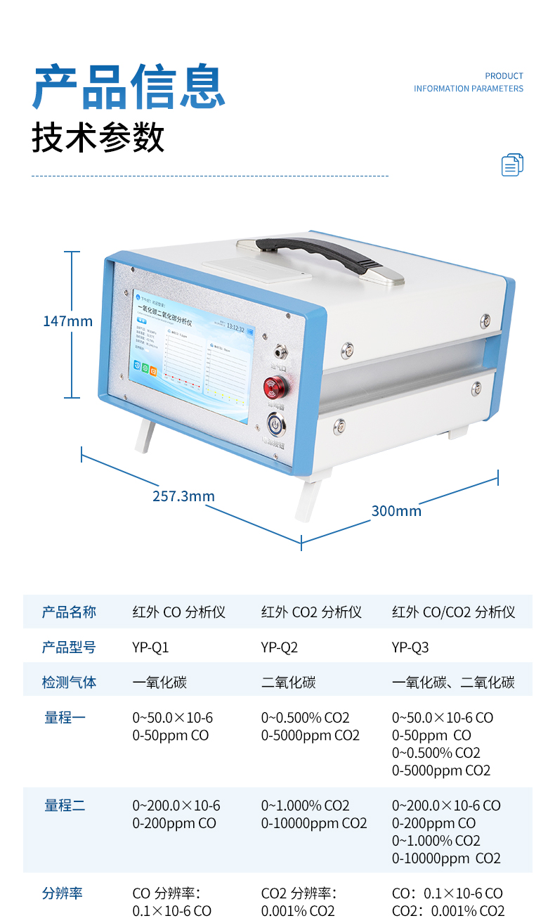4、測量范圍:選配一, 0~0.500% CO2 (0-5000ppm CO2 )