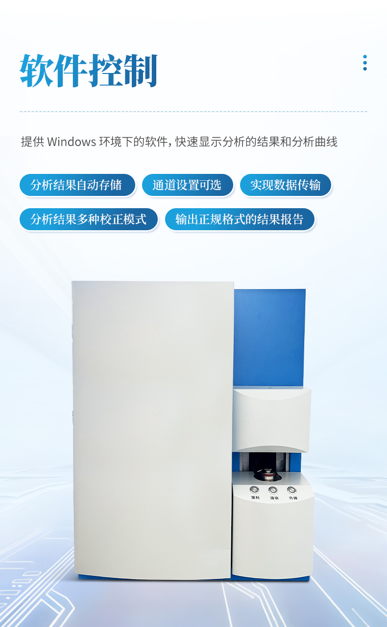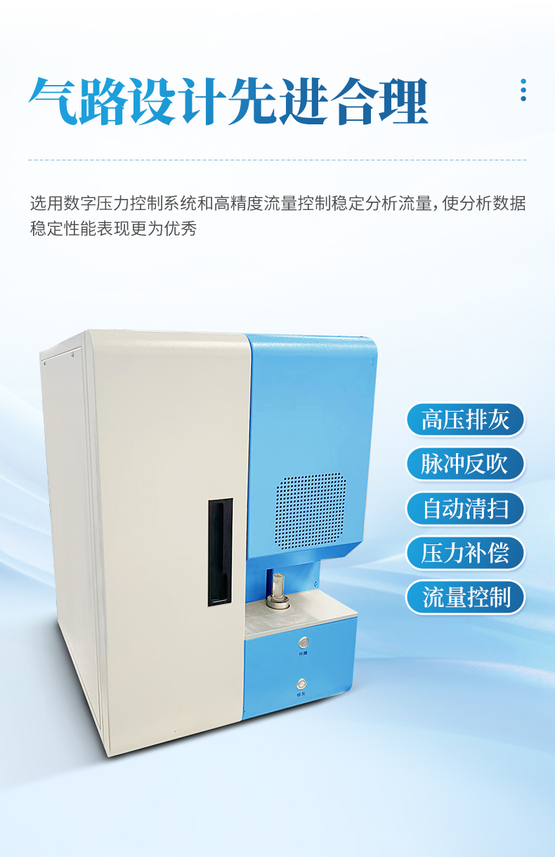 4、自動(dòng)反吹排灰系統(tǒng)、自動(dòng)清掃爐頭系統(tǒng),選配自動(dòng)吸塵功能,能有效的減少粉塵對(duì)碳、硫元素分析的影響。