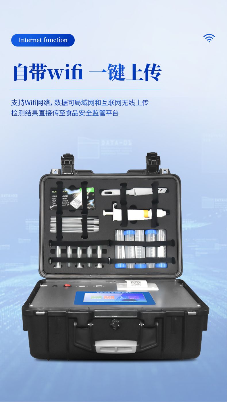 13、支持Wifi網(wǎng)絡(luò),數(shù)據(jù)可局域網(wǎng)和互聯(lián)網(wǎng)無線上傳,檢測(cè)結(jié)果直接傳至食品安全監(jiān)管平臺(tái)。進(jìn)行區(qū)域食品安全監(jiān)管及大數(shù)據(jù)分析處理,檢測(cè)區(qū)域食品安全長(zhǎng)短期動(dòng)態(tài),達(dá)到食品安全問題預(yù)估、預(yù)警。