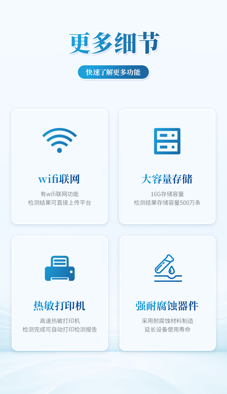(4) 高容量16G存儲容量,檢測結果存儲容量500萬條。