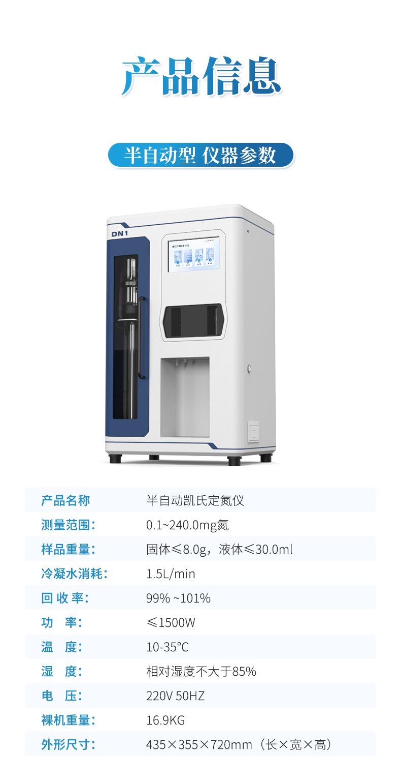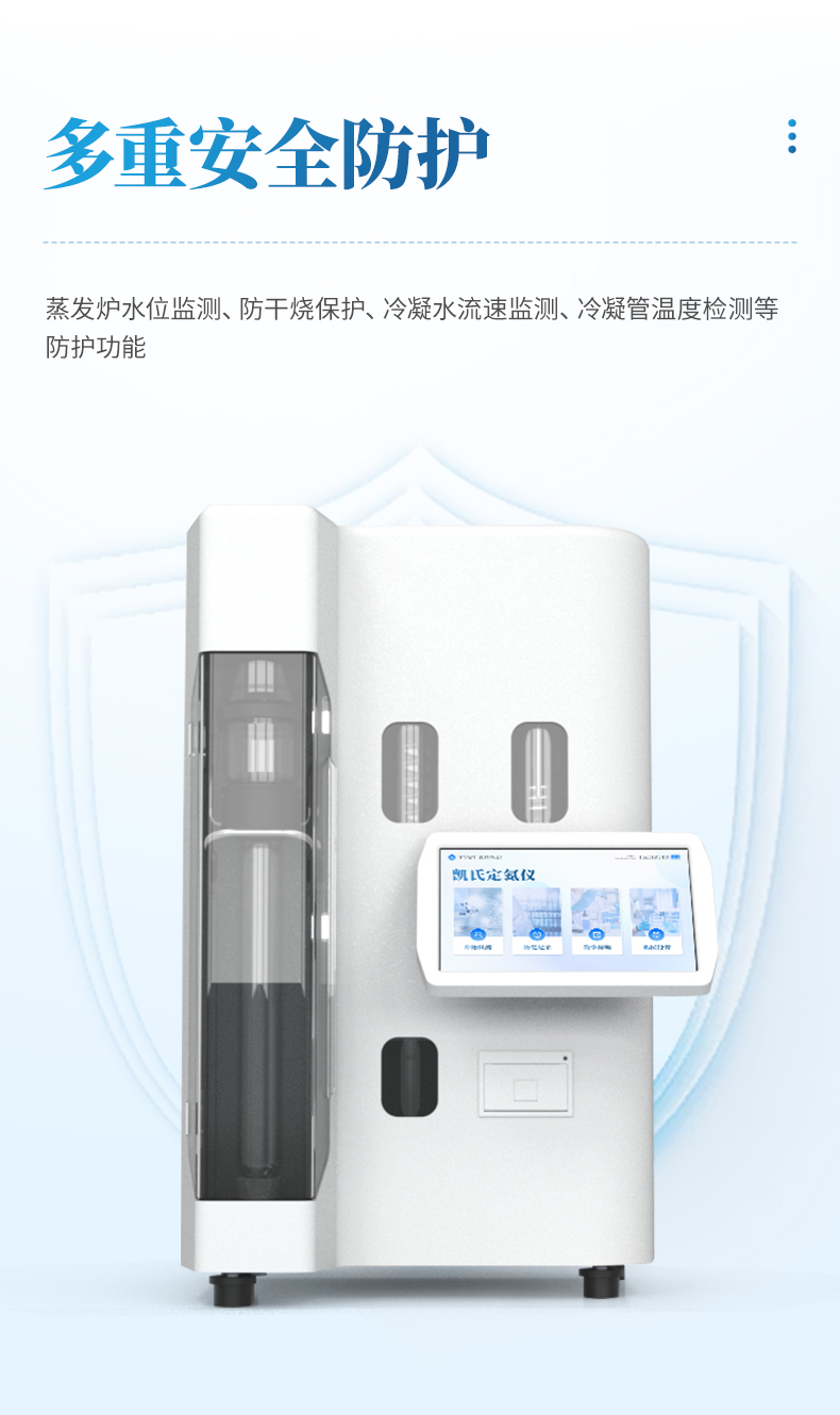 全自動凱氏定氮儀所有步驟自動按程序完成。為檢測人員在進行氮及蛋白質測定中提供了極大的方便。具有使用安全、可靠、操作簡單、省時省力等特點。