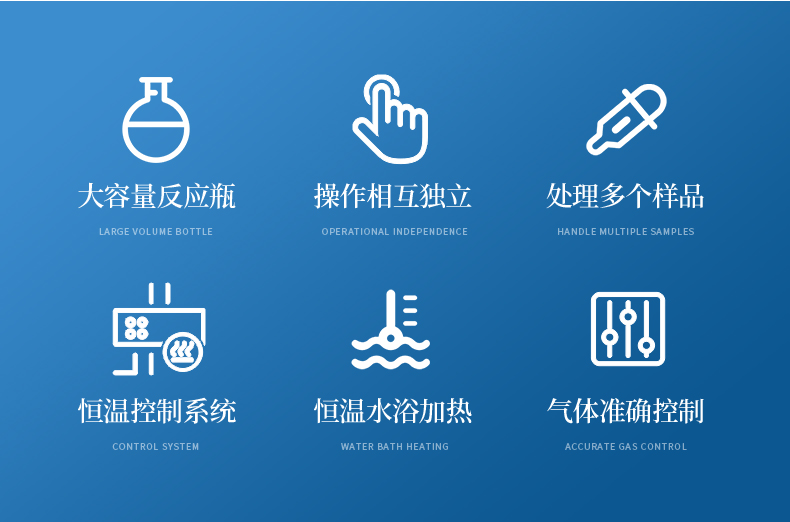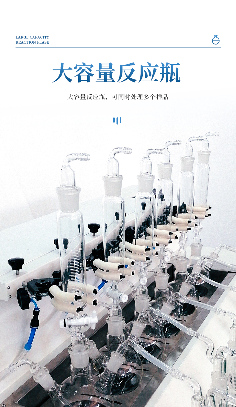 1、大容量反應(yīng)瓶,可同時(shí)處理多個(gè)樣品。