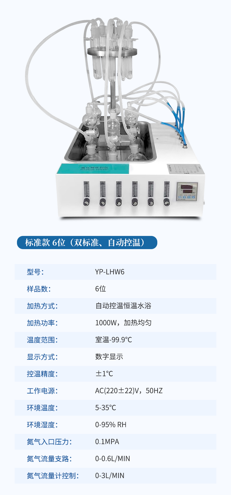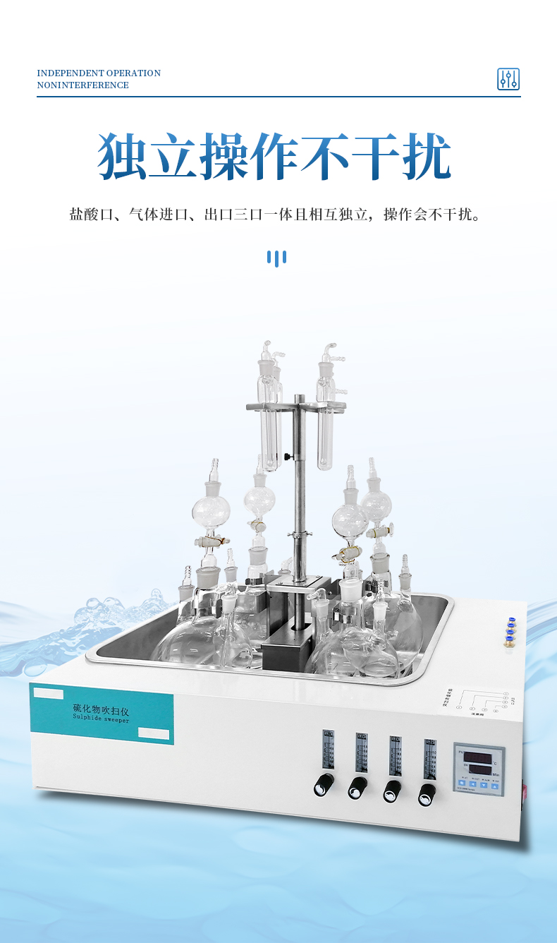 水質(zhì)硫化物酸化吹氣儀根據(jù)水質(zhì)硫化物的測定-亞甲基藍(lán)分光光度法(碘量法)標(biāo)準(zhǔn)開發(fā)生產(chǎn)的。滿足水質(zhì)硫化物測定的樣品前處理需要。