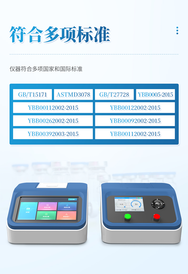 該儀器符合多項國家和國際標準:GB/T15171、ASTMD3078、GB/T27728、YBB00112002-2015、