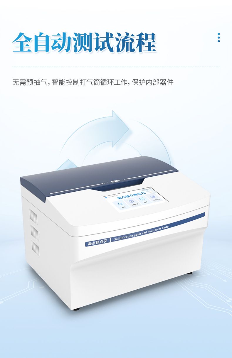 全自動凝點傾點測定儀主要用于石油產品的傾點凝點值測定,是一款集自動化、智能化和高精度于一體的凝點/傾點測定設備。通過創新溫控技術與自動氣壓檢測系統,可快速、準確地測定液體樣品的凝點和傾點。