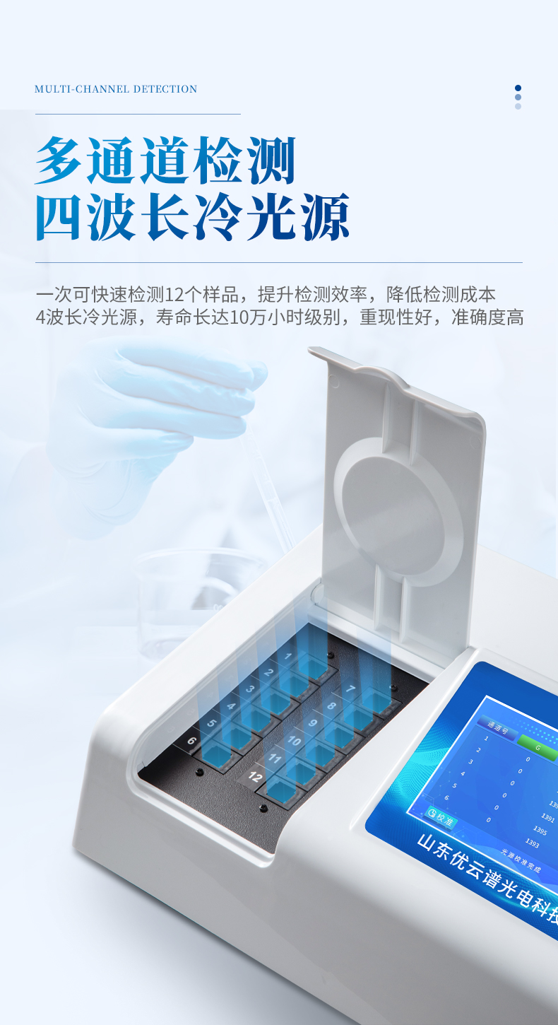 12、比色池部分采用標準1cm比色皿,無機械位移及磨損,光路測試定位精確,有效屏蔽外光干擾,保證檢測結果優于國標要求。
