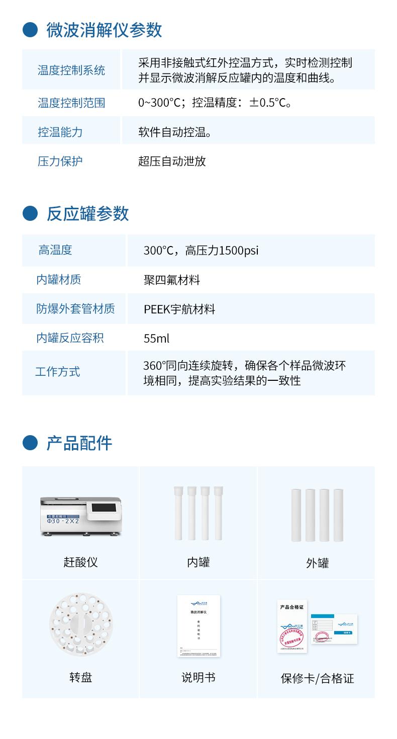 溫度控制系統:非接觸式紅外控溫,實時檢測控制并顯示微波消解反應罐內的溫度和曲線。