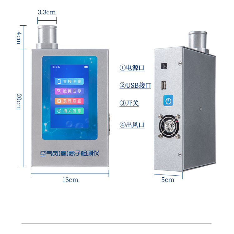 1、屏幕顯示:5.0英寸電容觸摸屏,800*480高分辨率,實時顯示負(氧)離子測量結果;