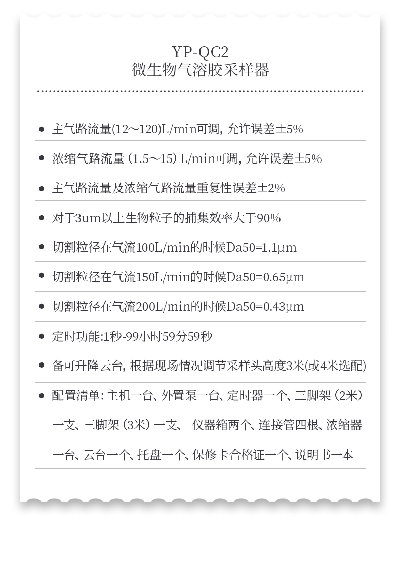 采樣流量:3-30升/分 采樣液量:10--20毫升