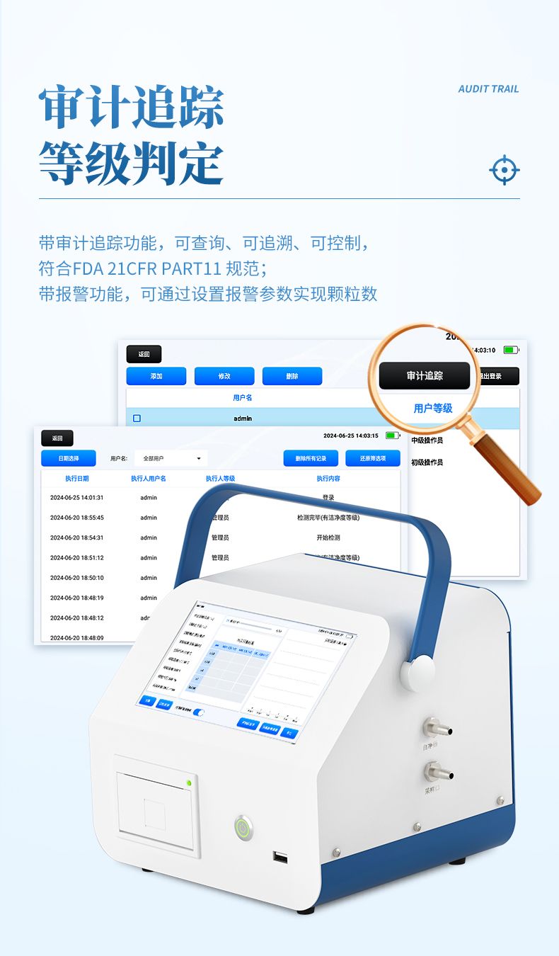 6、帶審計追蹤功能,可查詢、可追溯、可控制,符合FDA 21CFR PART11規范