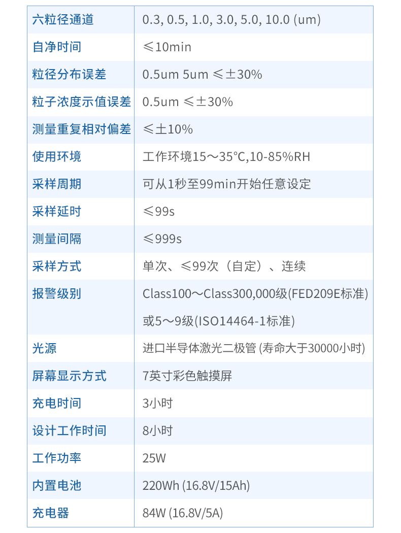 六粒徑通道:0.3,0.5,1.0,3.0,5.0,10.0(μm)