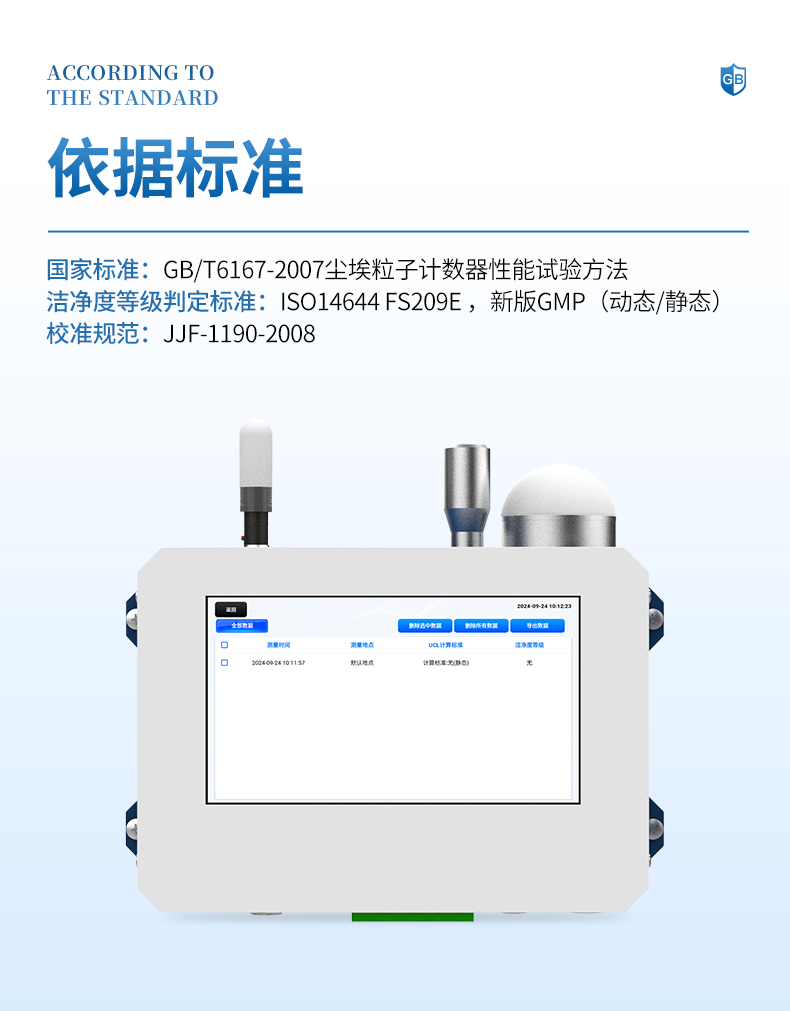 智能塵埃粒子計(jì)數(shù)器,其置信度測(cè)量檢定標(biāo)準(zhǔn)按照國(guó)標(biāo)GB/T6167-2007和校準(zhǔn)規(guī)范JJF1190-2008規(guī)定的條件,對(duì)凈化級(jí)別進(jìn)行自動(dòng)判斷。一次采樣可同時(shí)測(cè)得六個(gè)粒徑通道的塵埃粒子數(shù),并同時(shí)顯示六個(gè)粒徑通道粒子的數(shù)目及其變化情況。