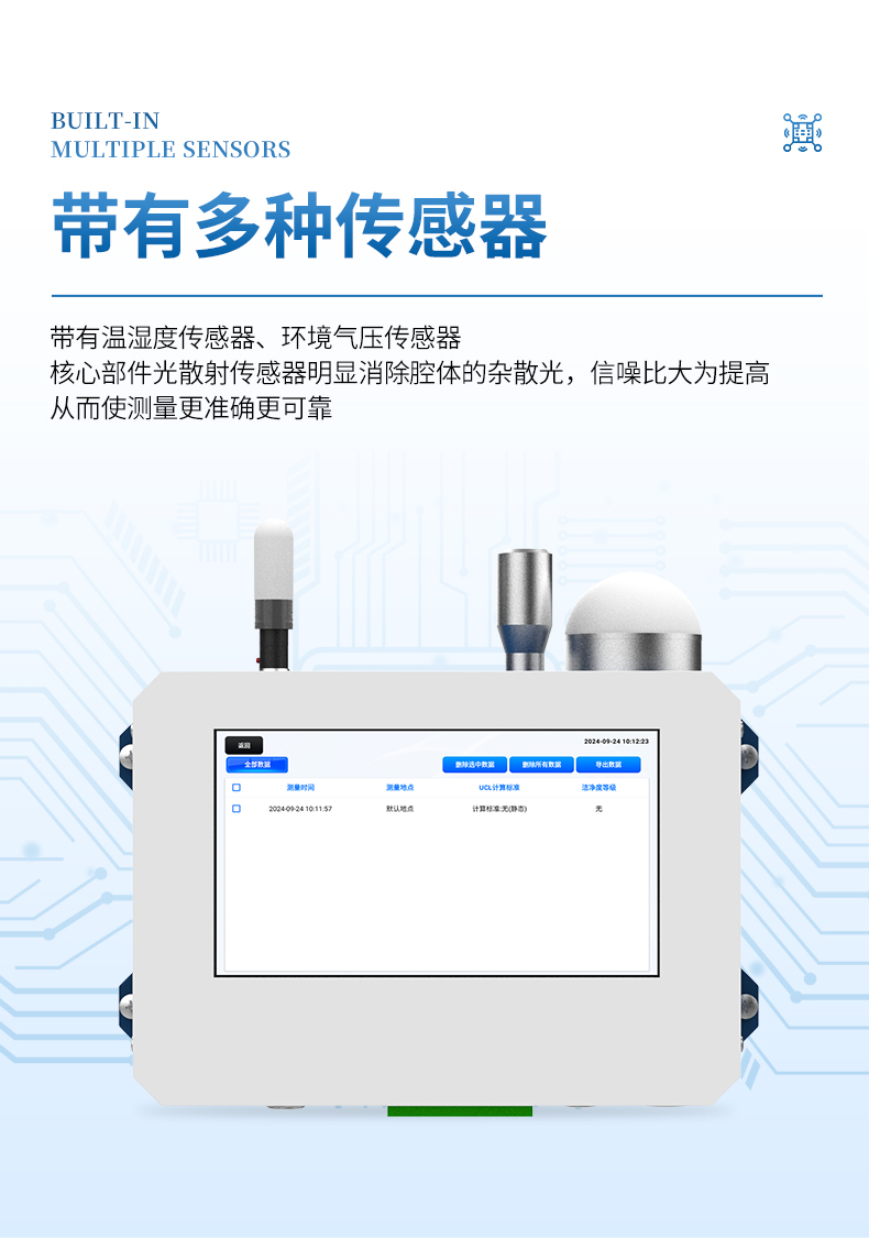 8、配置監(jiān)管平臺(tái),檢測(cè)結(jié)果可直接無(wú)線傳至云端,進(jìn)行潔凈度長(zhǎng)短期分析,輔助管理。