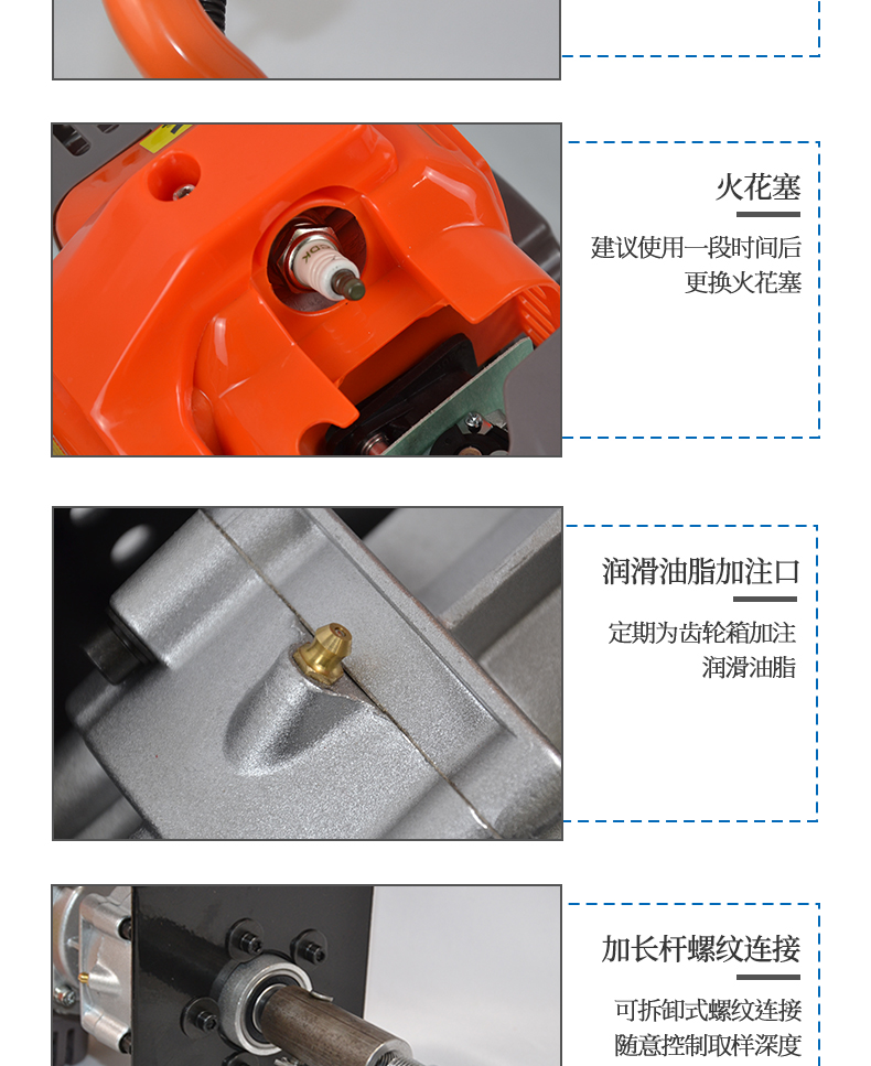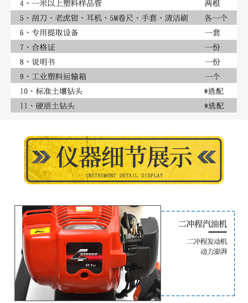 動力(汽油)土壤采樣器(汽油動力土鉆)土壤采樣器是本廠汲取廣大客戶意見、經多方用戶需求和市場調研,開發出的一款動力(汽油)土壤采樣器。儀器采用汽油機驅動、以大幅減免土壤取樣人員的勞動力和快速、取樣簡便而著稱。