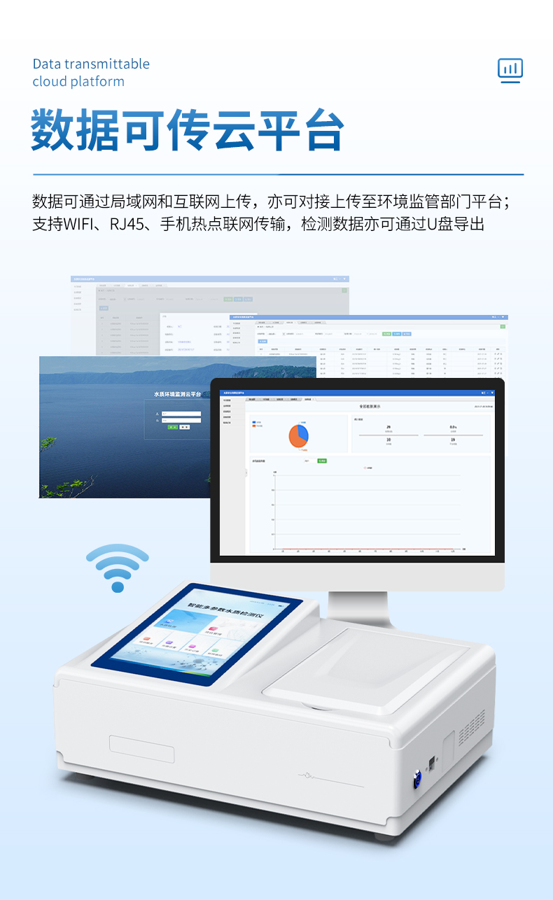 10、儀器帶有監管云平臺,數據可通過局域網和互聯網上傳,亦可對接上傳至環境監管部門平臺。