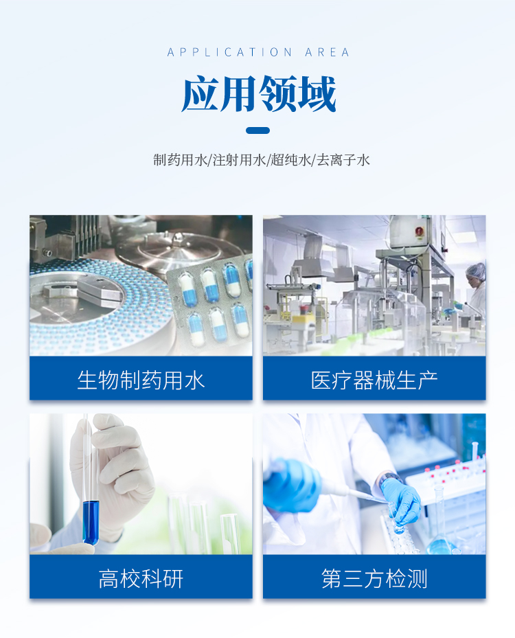 藥用水(純化水、注射用水)的離監(jiān)測和實驗室測試,以及清潔驗證;電子行業(yè)、食品行業(yè)等。