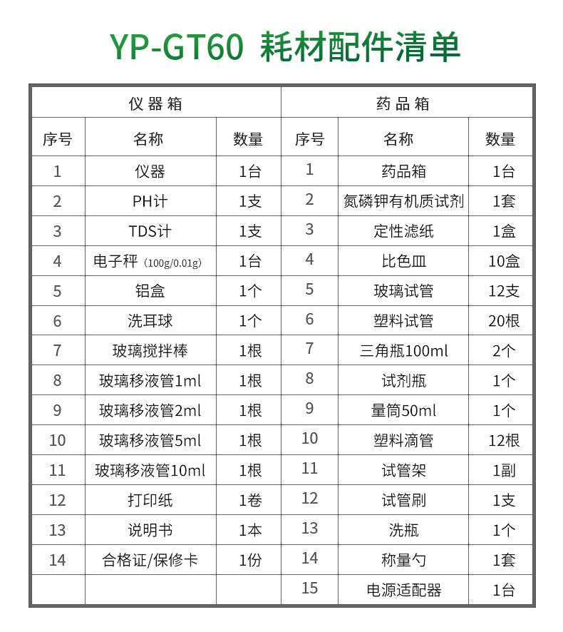 合格證/保修卡 | 份 | 1 | 試管刷 | 支 | 1 |
