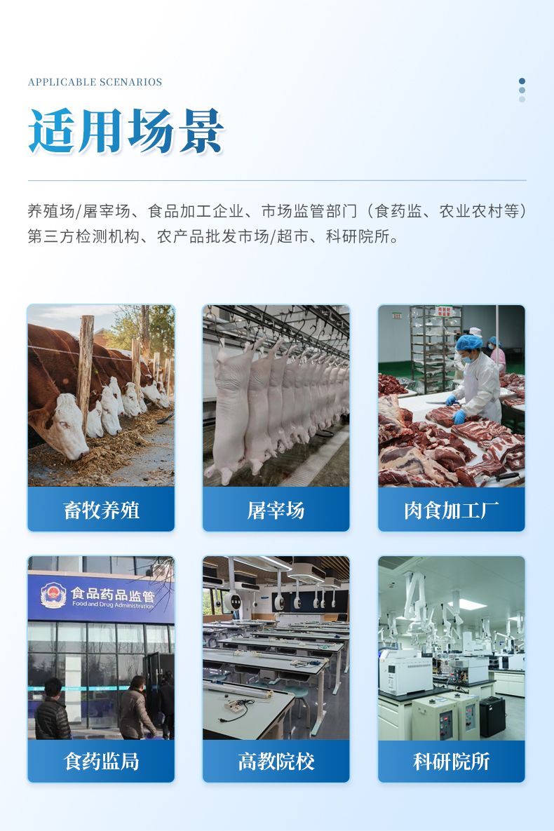 2、 抗生素殘留:四環素類、硝基呋喃類、磺胺類、β-興奮劑類、沙星類、磺胺類、喹諾酮類,甲砜霉素,氟苯尼考,金剛烷胺、替米考星、慶大霉素、林可霉素、鏈霉素、恩諾沙星、環丙沙星、頭孢啦啶、青霉素、阿莫西林等