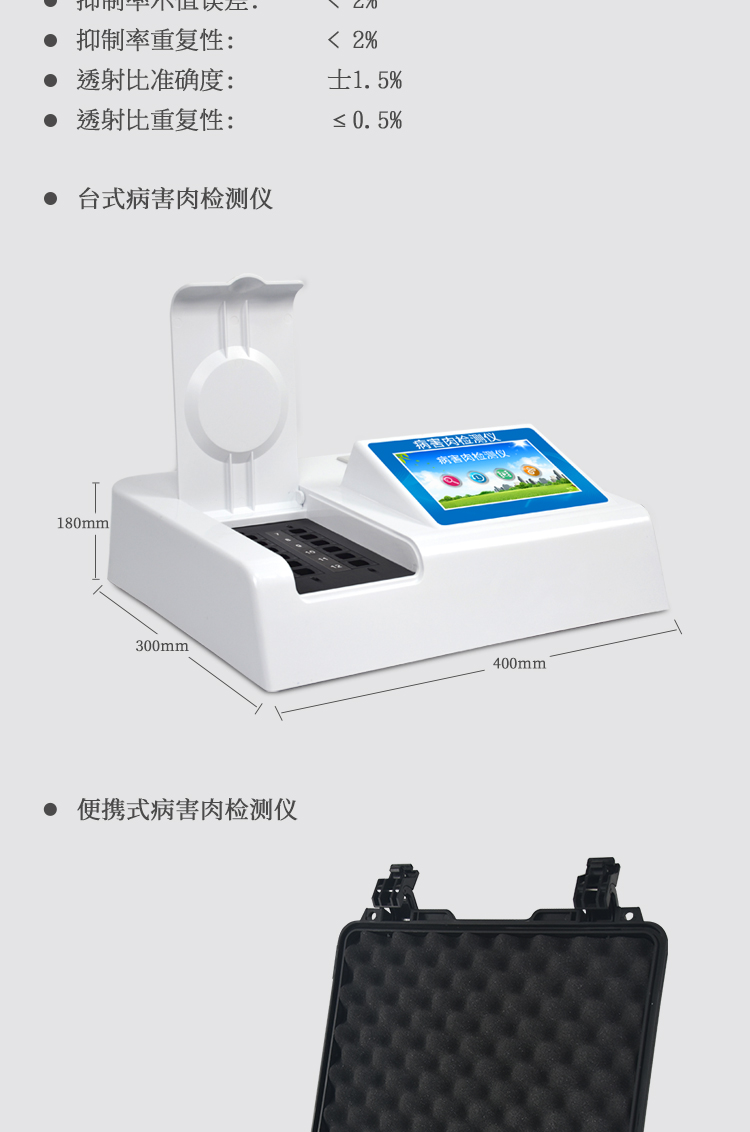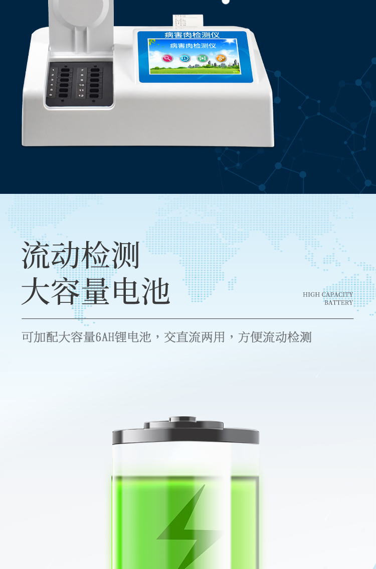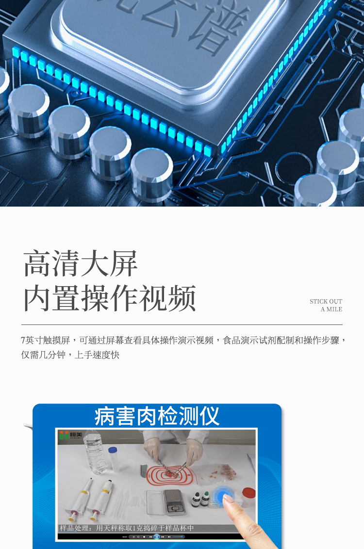可快速檢測病害肉、組胺、揮發(fā)性鹽基氮,儀器預(yù)留其他項(xiàng)目檢測程序和端口,根據(jù)日后需求可方便的自主增加檢測項(xiàng)目。