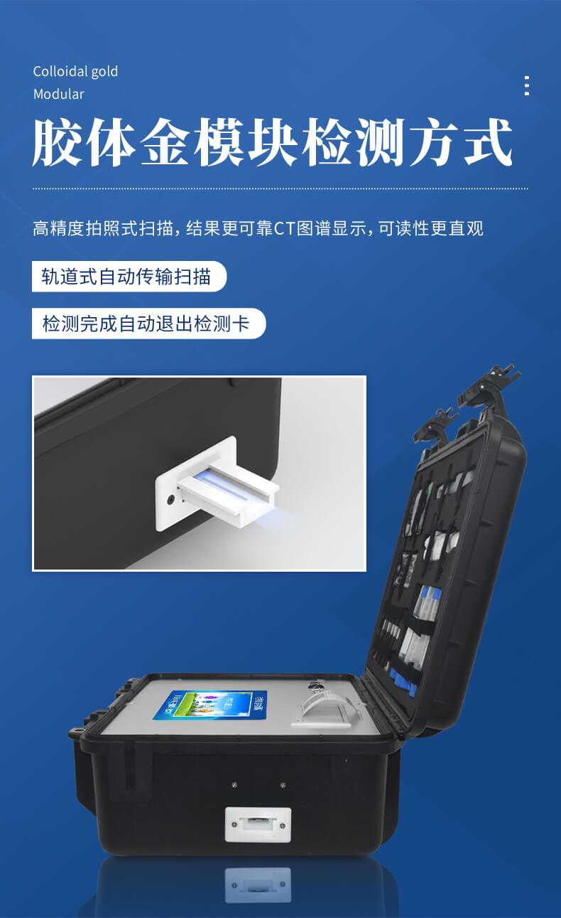 膠體金模塊檢測方式:軌道式自動傳輸掃描,檢測完成后自動退出試紙。