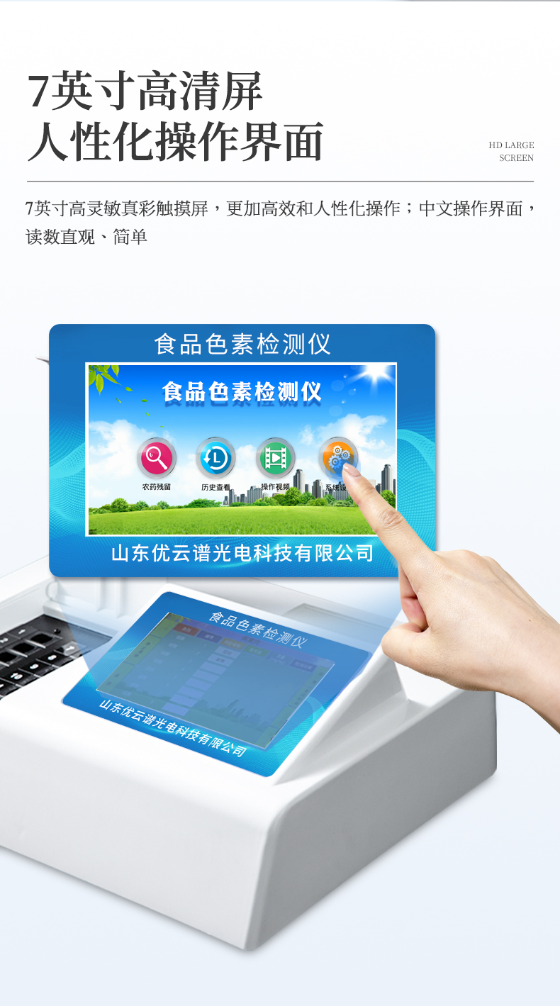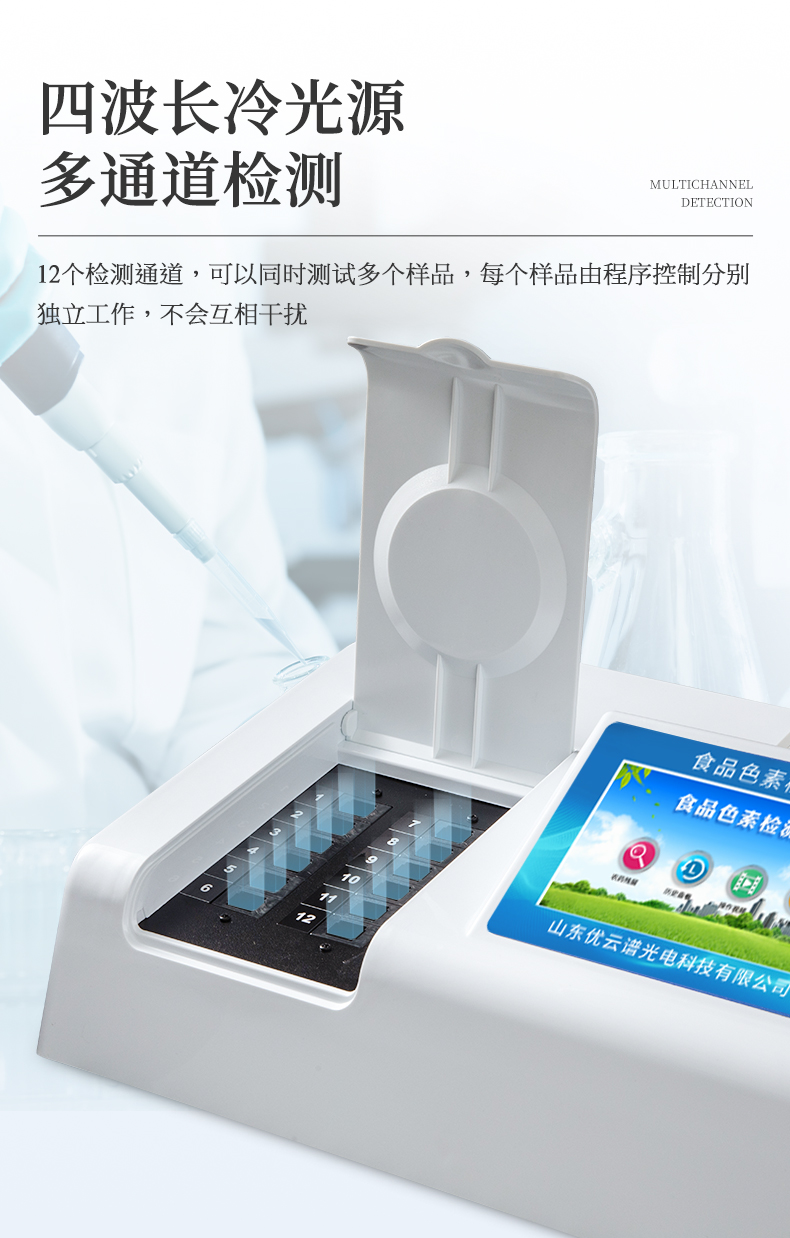 色素檢測儀可快速定量檢測食品中人工合成色素檸檬黃、日落黃、胭脂紅、莧菜紅、誘惑紅、亮藍、赤蘚紅的含量。