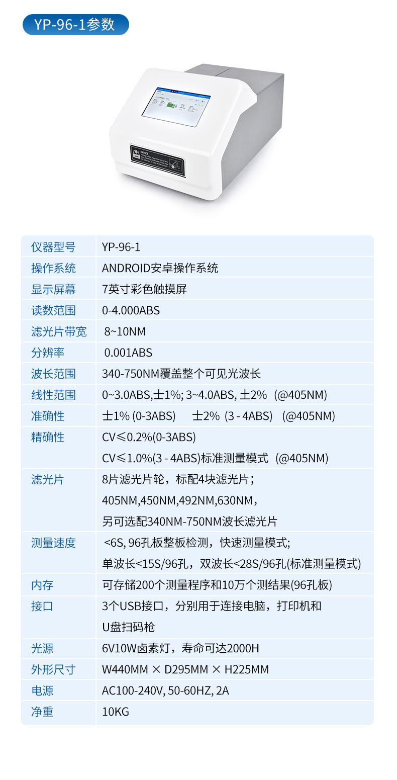 讀數(shù)范圍 0-4.000Abs