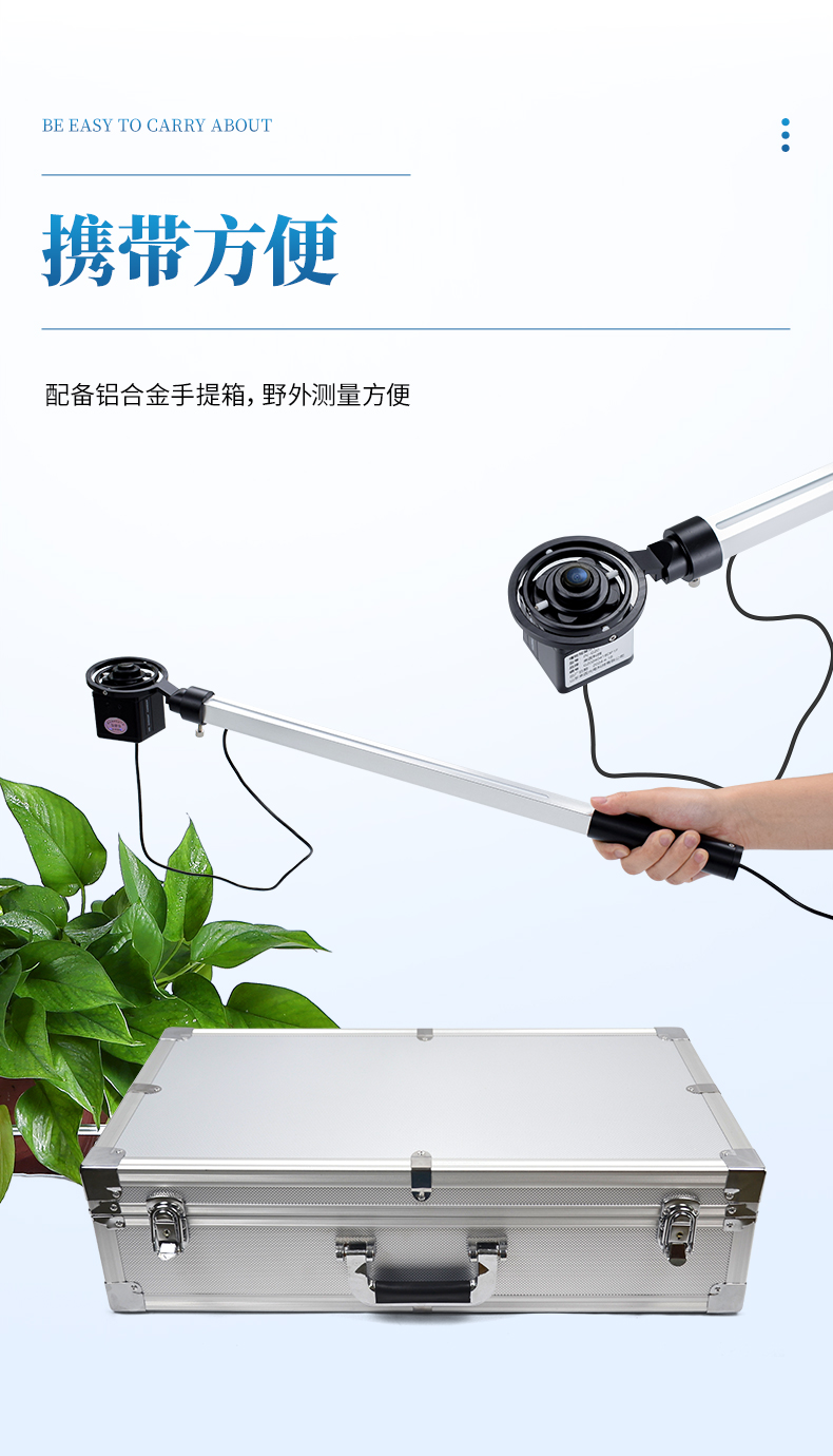 2. 魚眼鏡頭可以伸入至冠層中:鏡頭安裝在搖臂一端,由于小巧和帶有測量桿,可以方便地水平向前或垂直向上伸入到冠層不同高度處,快速地進行分層測量,測出群體內(nèi)光透過率和葉面積指數(shù)垂直分布圖;