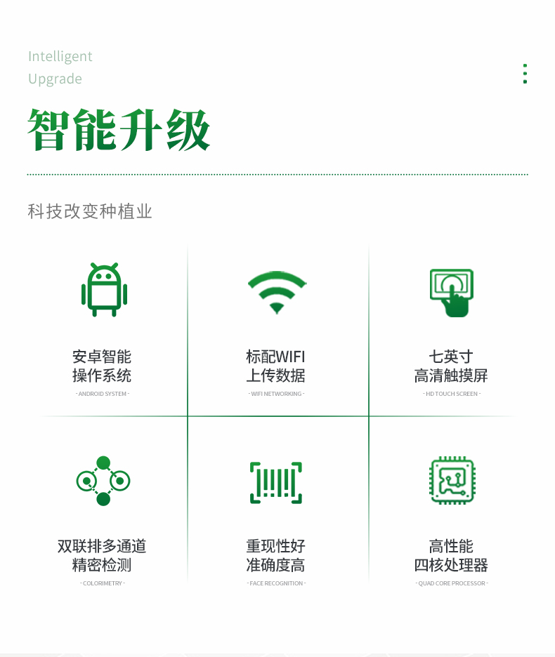 多功能植物養分檢測儀功能全:測試項目國內外全面(各類藥劑均可選購)。