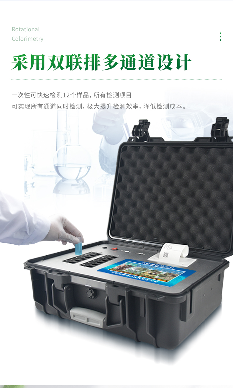 11、高強度PVC工程塑料手提箱設計,堅固耐用,便于攜帶,供電方式為交直流兩用,可野外流動測試配套成品藥劑。