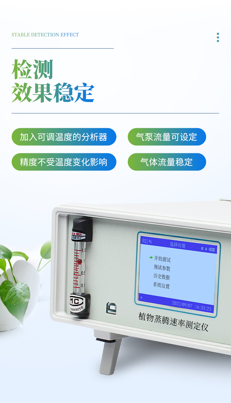 零點漂移:±0.005L,氣泵流量可根據(jù)需要設(shè)定,可測量不同氣體流量下對光合作用的影響,氣體流量穩(wěn)定。