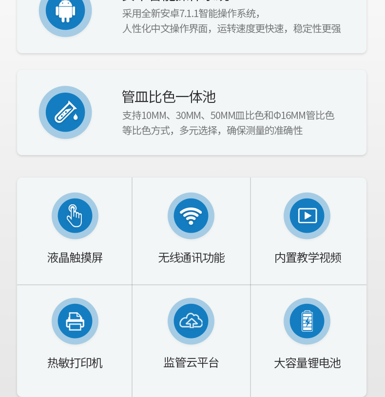 比色方式:預制比色試管16mm;比色皿50mm(含)以下;
