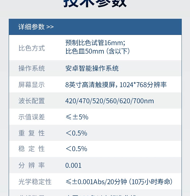 光學穩定性:≤±0.001Abs/20分鐘(10萬小時壽命);