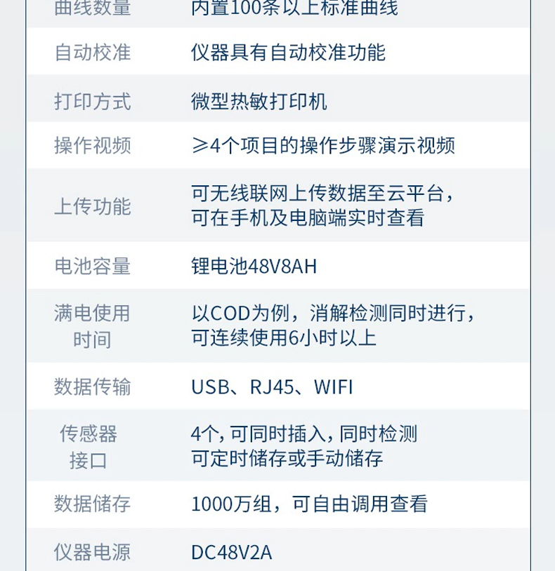 5、便攜一體式檢測設備,內置大容量鋰電池,可一機實現戶外水樣消解、測定。