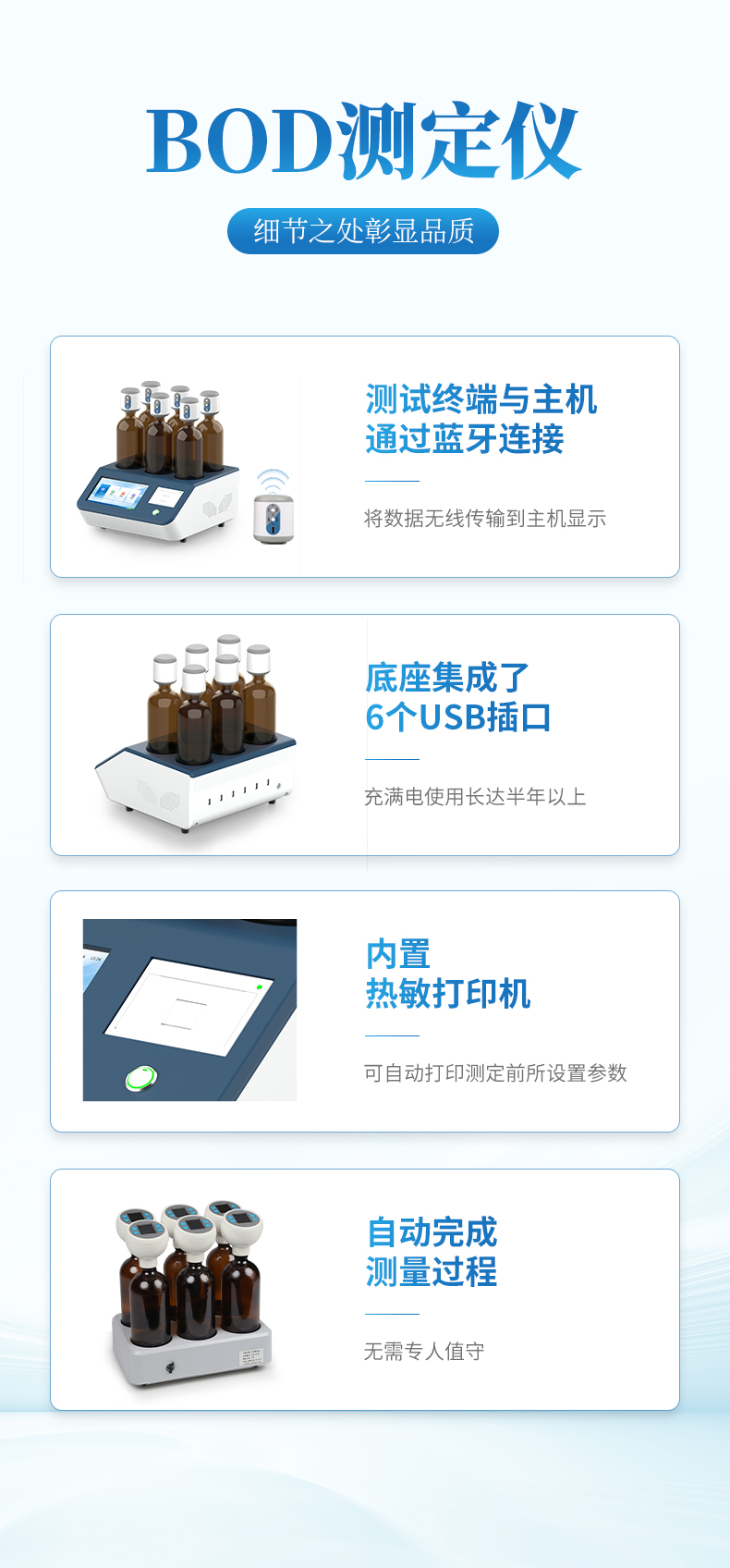 5、無需人工換算,儀器可直接顯示BOD濃度值,多組數(shù)據(jù)可在統(tǒng)一界面顯示;