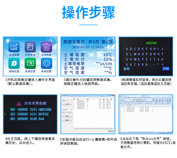 6、能存儲指定各個點的土壤溫度值、水分值,上位機軟件功能強大,隨時可以通過USB接口將記錄中的數據導出到計算機上,并可以存儲為EXCE表格文件,生成數據曲線,以供其它分析軟件進一步進行數據處理。